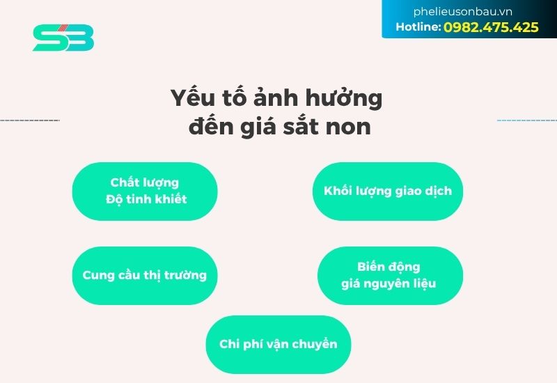 Nhiều yếu tố ảnh hưởng đến giá sắt non trên thị trường. Chất lượng và độ tinh khiết quyết định giá trị cơ bản, sắt non càng ít tạp chất càng có giá cao. Khối lượng giao dịch cũng tác động mạnh đến giá, khi khối lượng lớn thường được hưởng giá ưu đãi. Ngoài ra, nhu cầu thị trường, biến động giá nguyên liệu toàn cầu và chi phí vận chuyển đều góp phần định hình giá sắt non tại từng thời điểm.